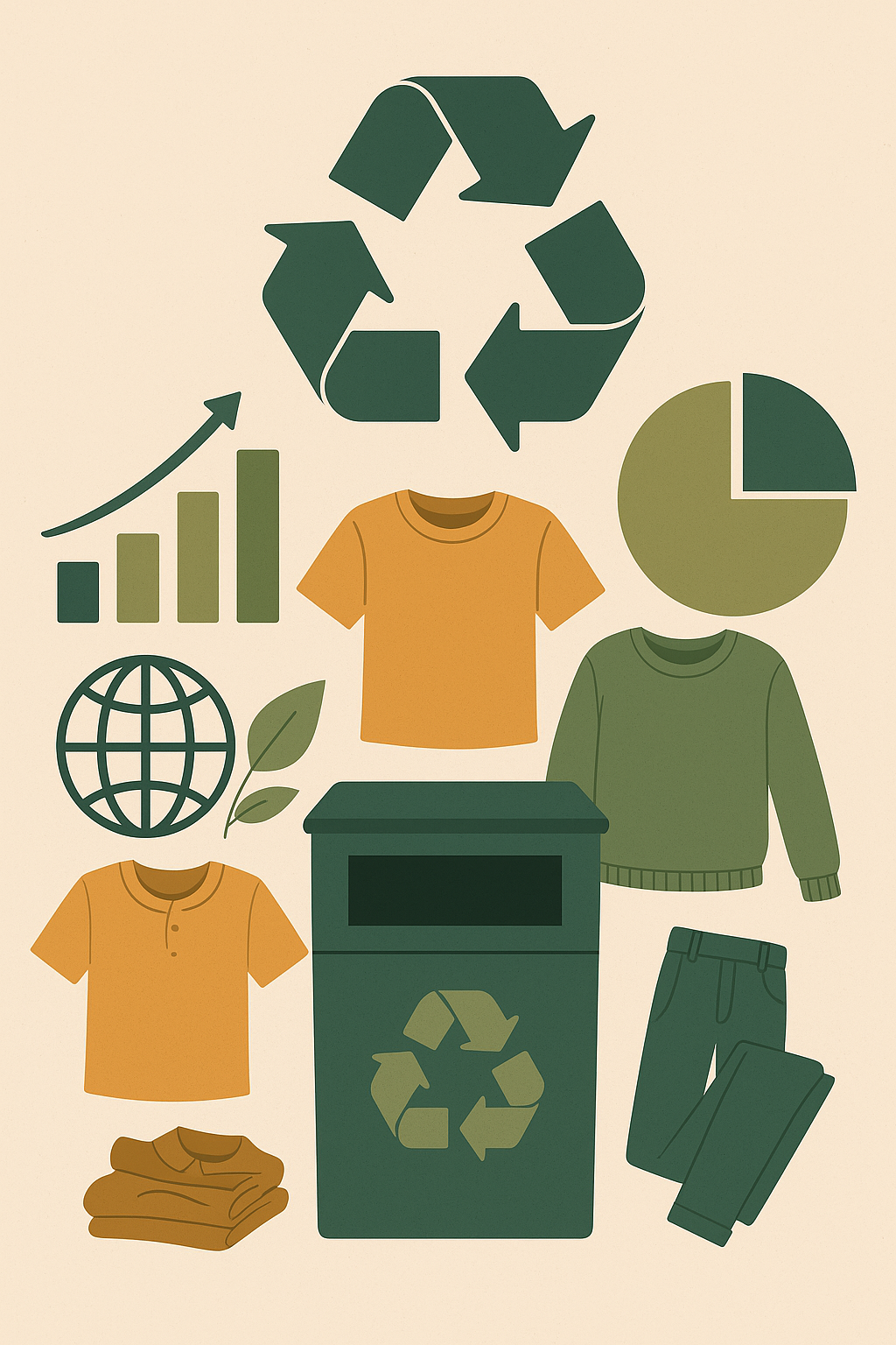 في ظل النمو السريع لصناعة الأزياء والإنتاج الضخم للملابس، أصبح التخلص السريع من الملابس المستعملة يُشكّل تحدياً بيئياً كبيراً. تشير التقارير إلى أن أقل من 1 ٪ من النفايات النسيجية العالمية تُعاد إلى قطاع الأزياء لإنتاج ملابس جديدة. medwaves-centre.org+2SGSCorp+2
