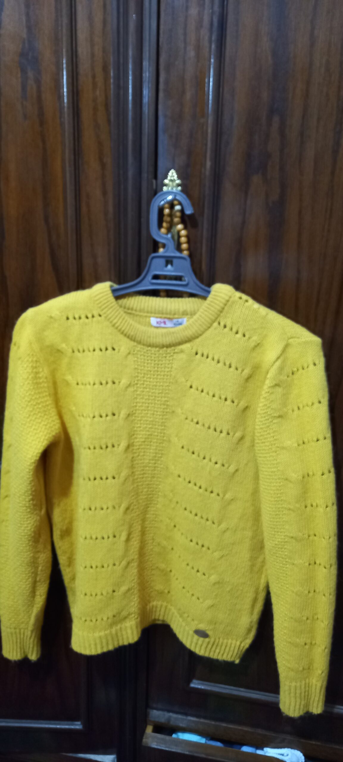بلوفر بناتي لبس مرتين لون حمصي اغمق درجه من الصورة مقاس ١٤ الخامه صوف