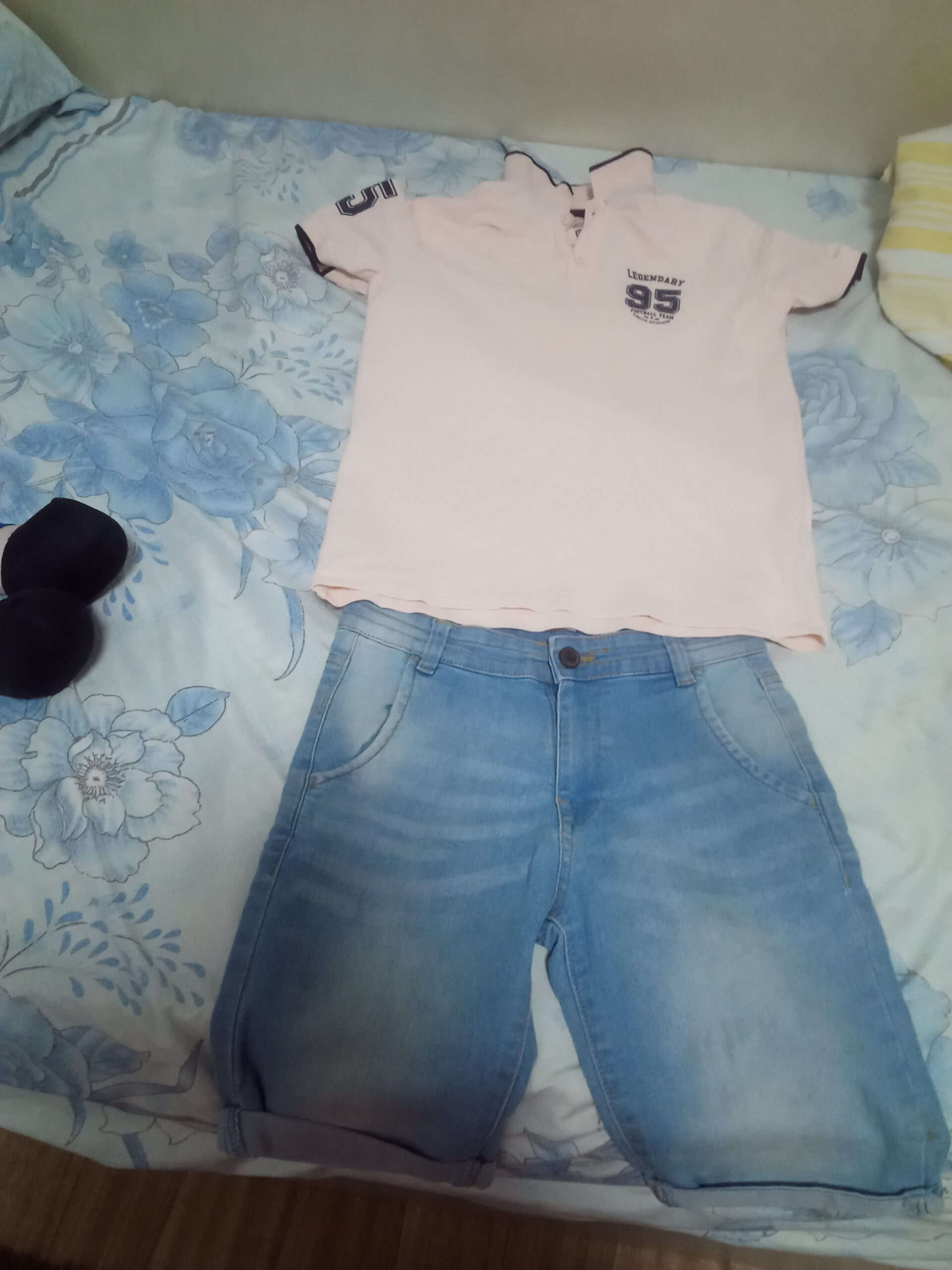 شورت جينز طري وتبشيرت روز قطن مقاس 12