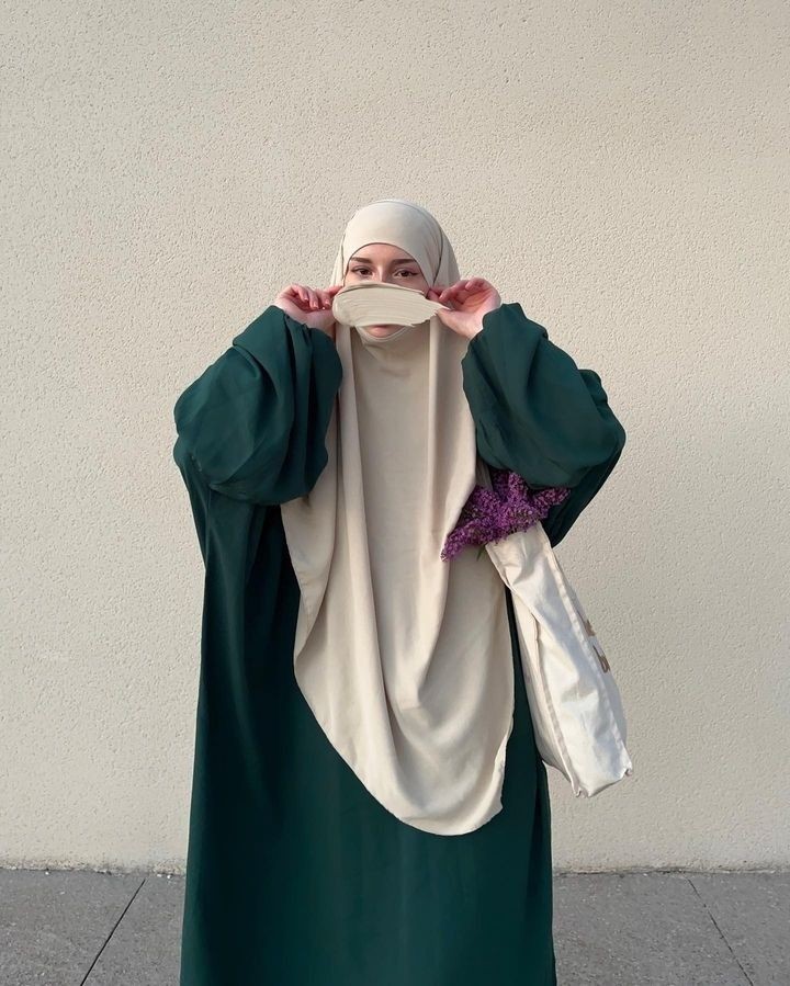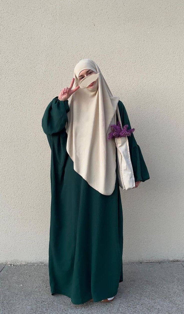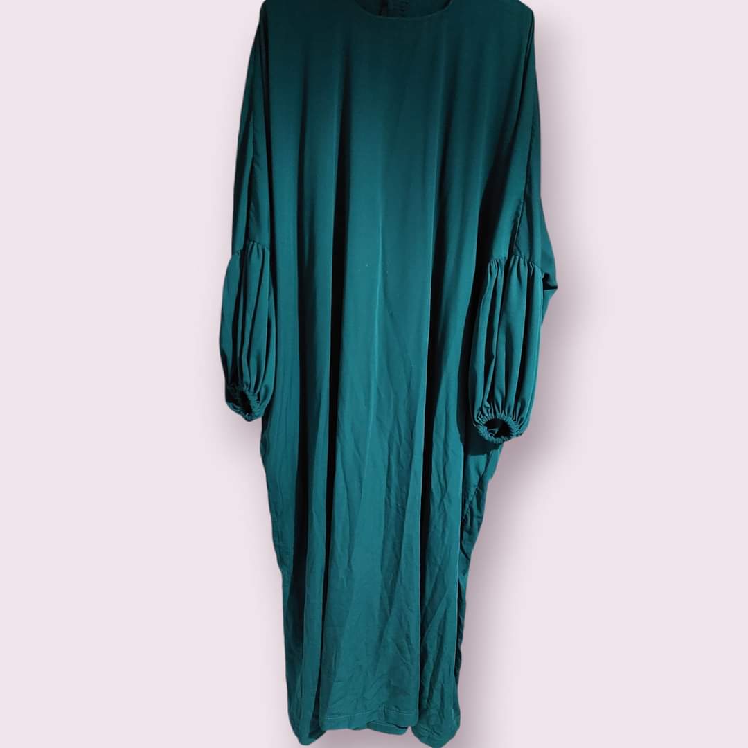 فستان واسع فضفاض لونه أخضر غامق