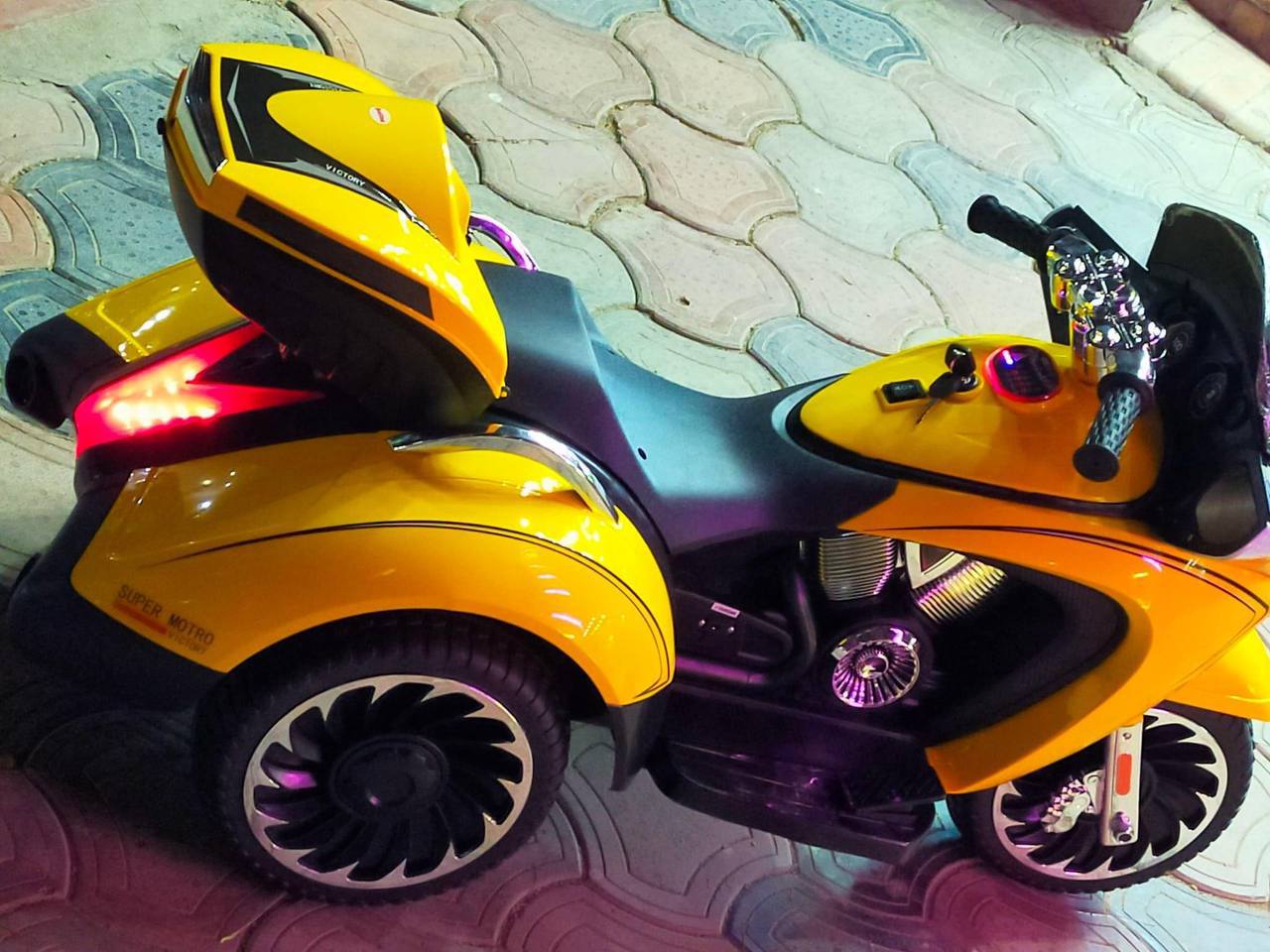 متوسيكل الشرطة الكبير الأصلي يحمل طفلين صغيرين أو طفل حتى 9سنوات سارينة الشرطه الحقيقة الاصليه شنطه خلفية لحمل ألعاب الأطفال فوانيس ليد اماميه وخلفيه عجلات كبس ضد الانزلاق والكسر تمشي على أي طريق رمل أو اسفلت أو نجيله أشارات أمامي مع السارينه برنامج موسيقى واغاني كامل مدخل فلاشه لتشغيل الأغاني إللي عاوز طفلك يسمعها وصلة أي يو إكس وسماعات بطاريه كبيرة 12 فولت